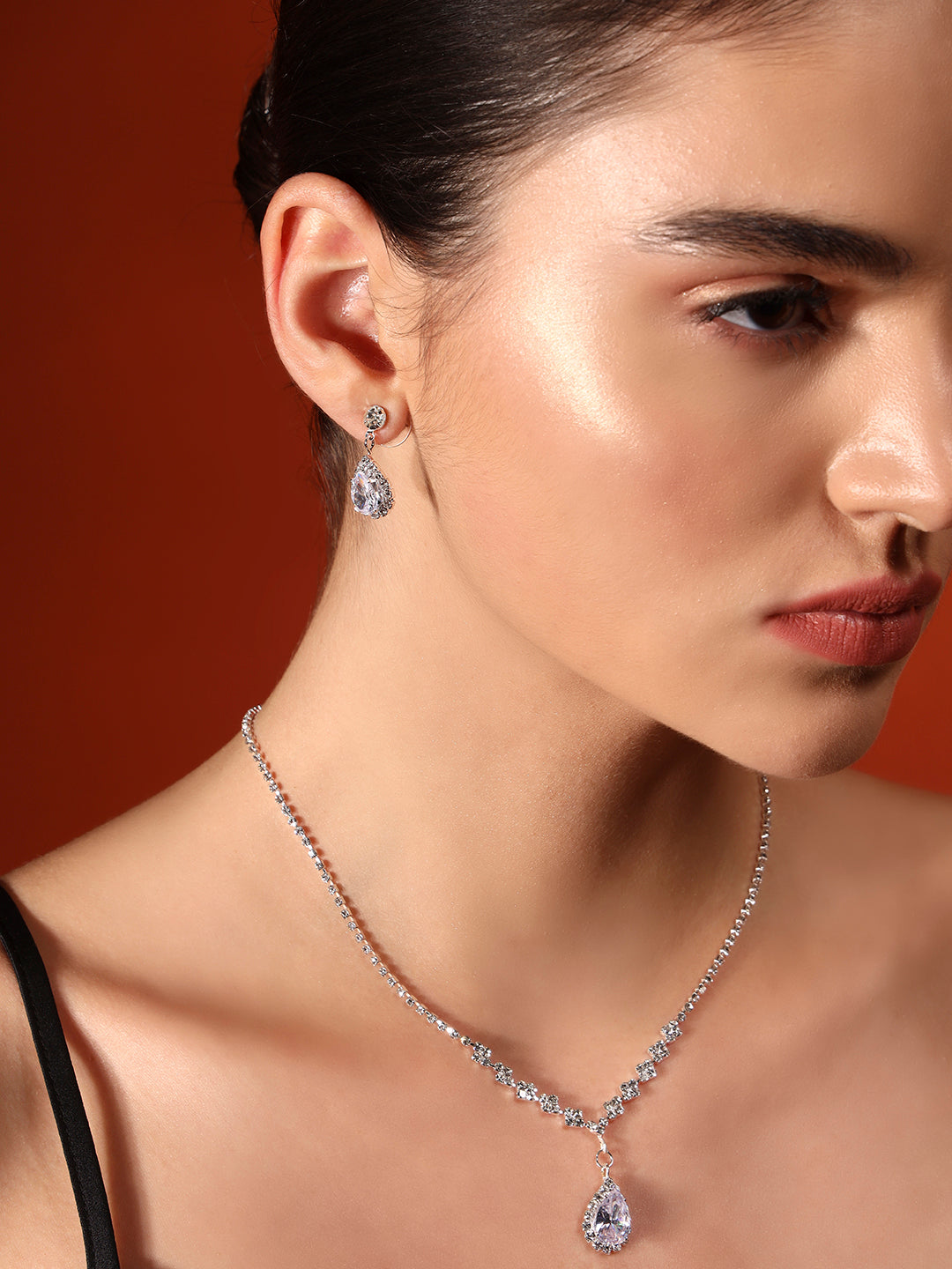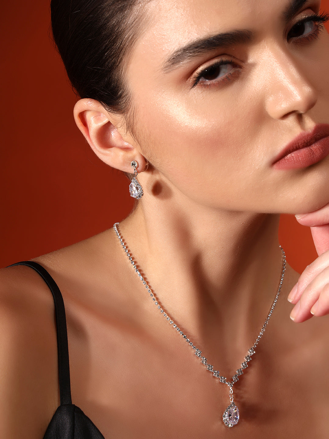 Handcrafted with silver plating and teardrop-cut American diamonds, this set brings effortless grace to any look.
