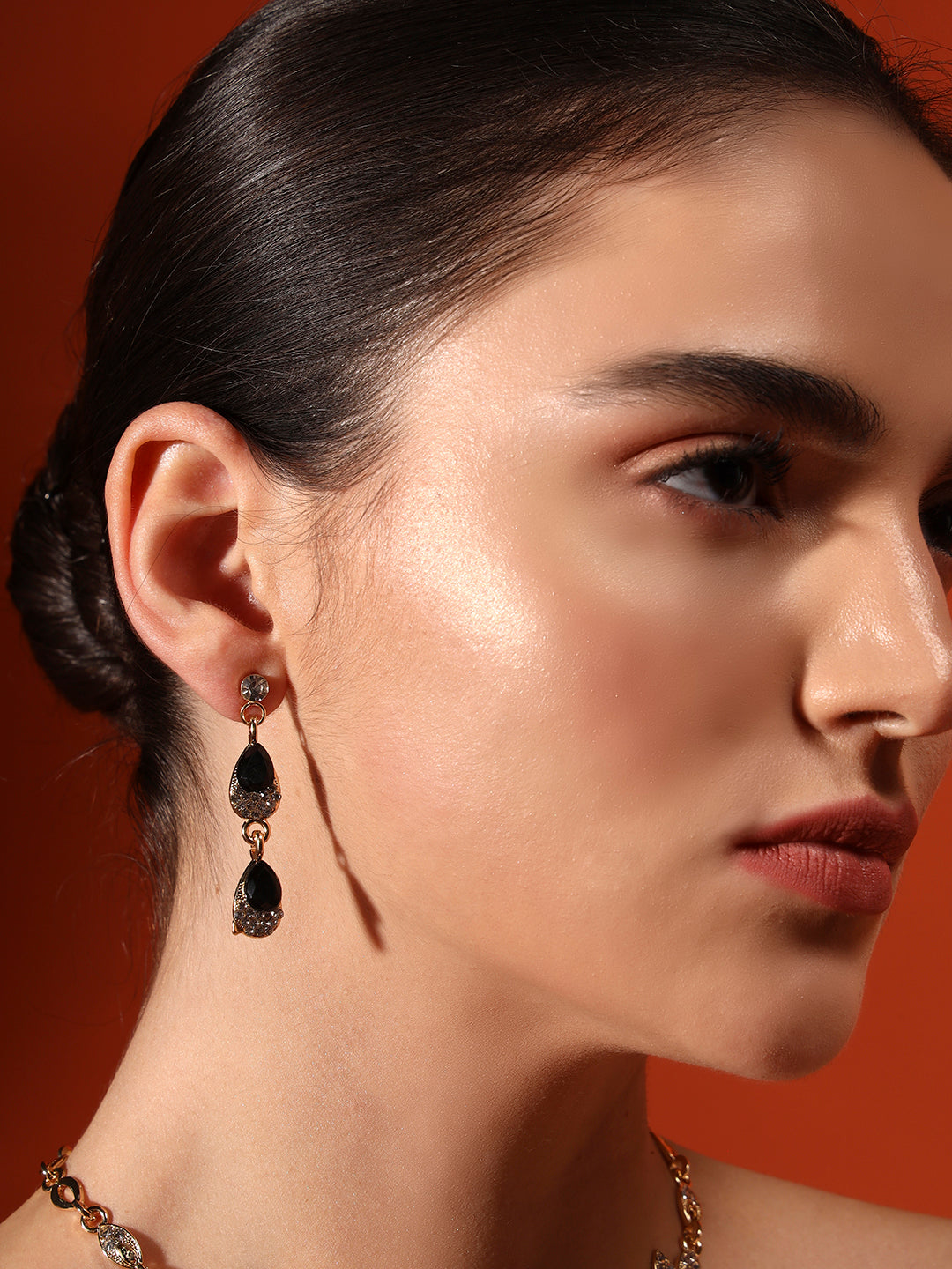 The Midnight Bloom Set is where confidence meets elegance. Designed with precision-cut black stones framed in rich gold plating, this set captures the charm of moonlit evenings and festive celebrations.